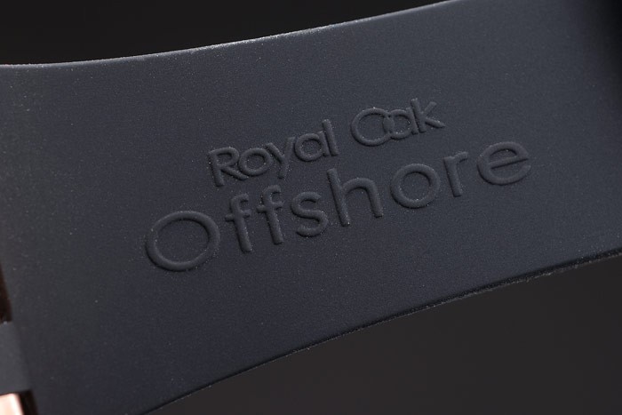 Armband plattiert: Schwarzes Kautschukband mit Hitze geprägt Audemars Piguet Royal Oak Offshore Stempel und ein Audemars Piguet eingeschrieben ionenplattiert Haken-Schnalle clasp