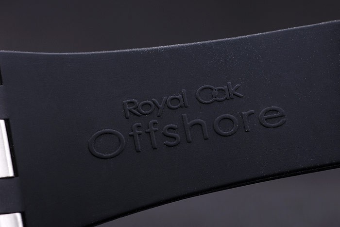 Armband: Schwarzes Kautschukband mit Hitze geprägt Audemars Piguet Royal Oak Offshore Stempel und einer Audemars Piguet bezeichnet ionenplattiert Hakenschnalle clasp