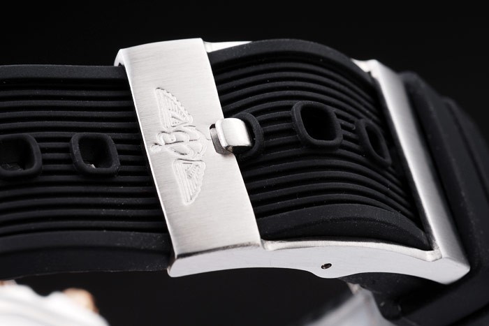 Armband: Gerippte schwarzen Kautschukarmband mit gravierten Edelstahlhaken-Schließe mit Breitling Logo auf top