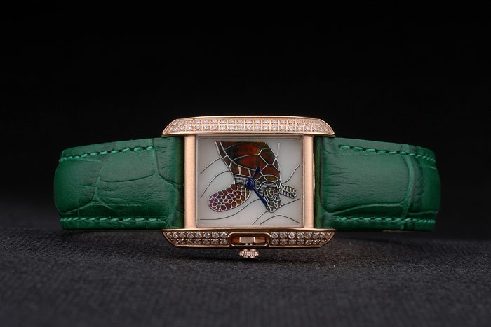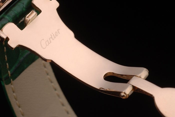 Armband plattiert: Cartier Hitze geprägt grün Krokolederarmband mit 18 Karat Roségold plattiert Einfalt-Verschluss-Schnalle