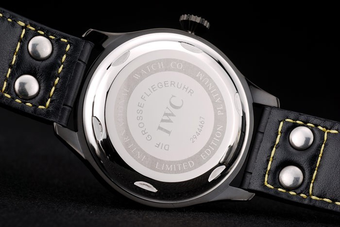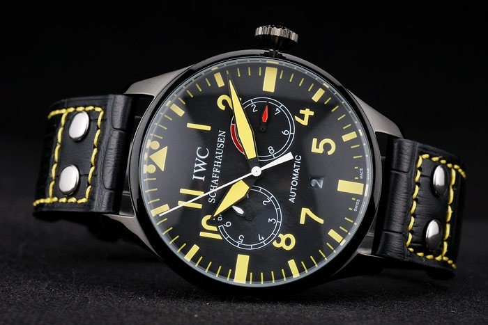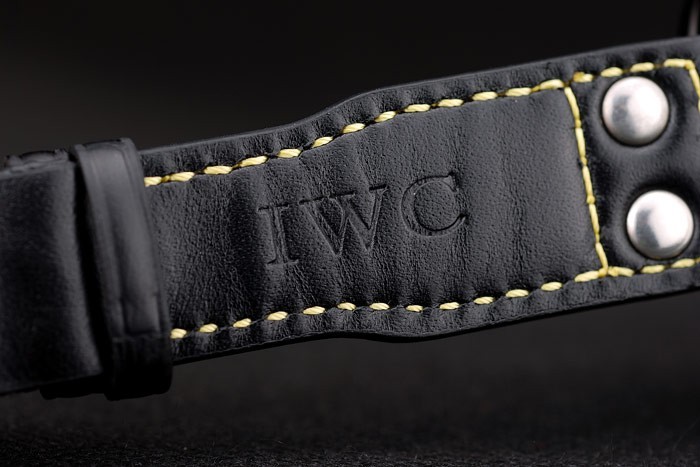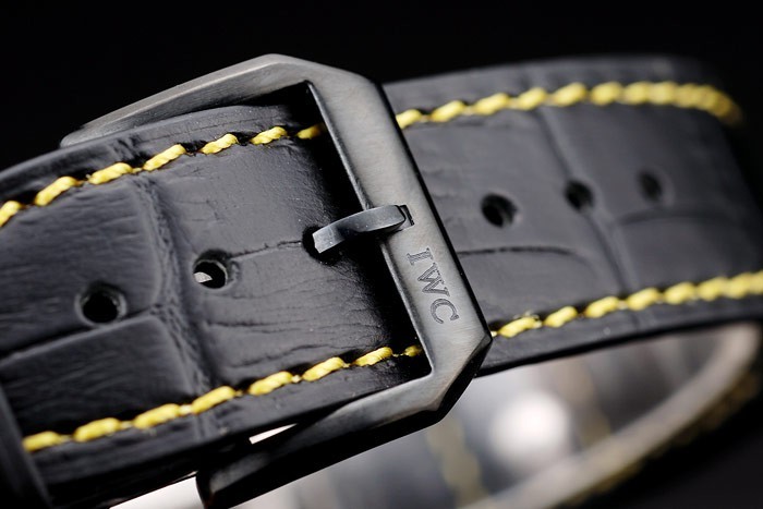 Armband: IWC Hitze geprägt schwarzem Krokolederarmband mit gelben Nähfaden und IWC gravierten ionenplattiert Edelstahlhaken-Schnalle clasp