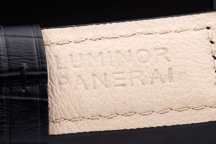 Armband: Schwarzes Krokolederarmband mit Wärme geprägt Luminor Panerai Stempel und ionenplattiert Edelstahl Haken-Schließe mit Panerai engraving