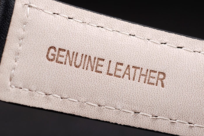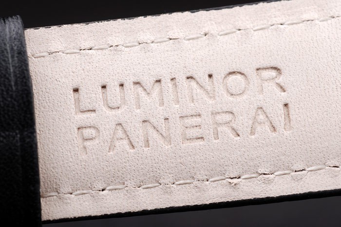 Armband: Schwarzes Lederband mit Wärme geprägt Luminor Panerai Stempel und ionenplattiert Edelstahl Haken-Schließe mit Panerai engraving