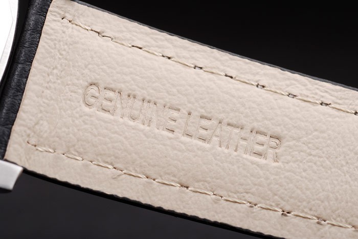 Armband: Schwarzes Lederarmband mit weißen Nähten und Wärme geprägt Luminor Panerai Stempel und gebürstetem Edelstahl Haken-Schließe mit Panerai engraving