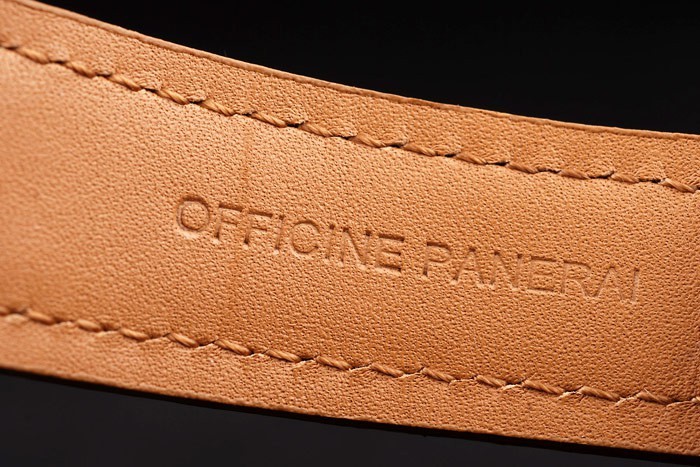 Armband: Hellbraun Lederband mit Wärme geprägt Officine Panerai Italien Stempel und gebürstetem Edelstahl Haken -Schnalle Spange mit Panerai engraving