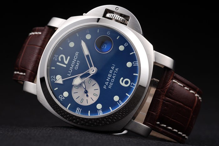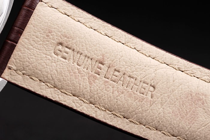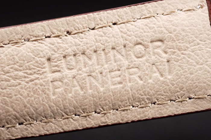 Armband: Braunes Lederarmband mit weißen Nähten und Wärme geprägt Luminor Panerai Stempel und poliertem Edelstahl Haken -Schnalle Spange mit Panerai engraving