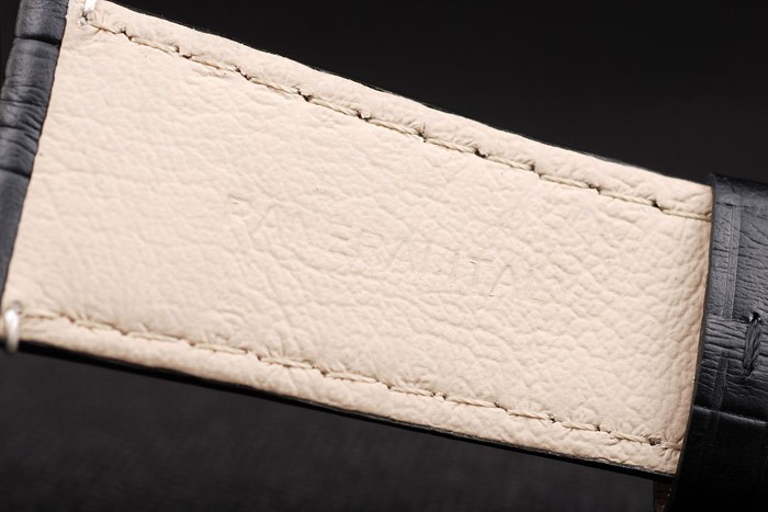 Armband: Schwarz Krokodillederband mit weißen Nähten und Wärme geprägt Officine Panerai Italien Stempel und poliertem Edelstahl Haken-Schließe mit Panerai engraving