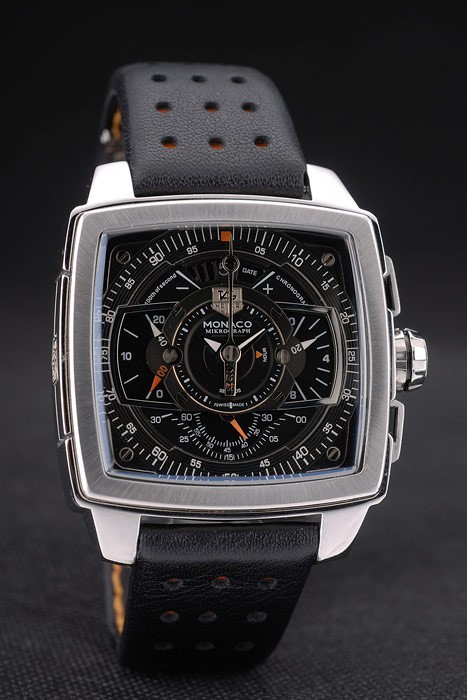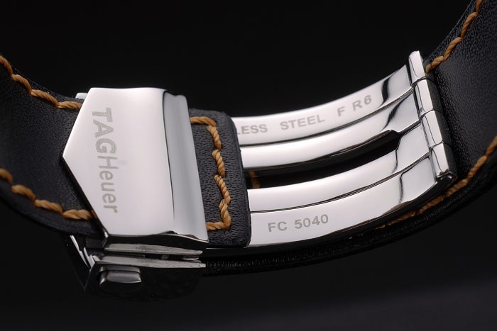 Armband: Hitze geprägt Tag Heuer schwarz perforiert Lederarmband mit orangefarbenen Nähten auf der Innenseite und Edelstahl Einfalt-Verschluss mit Push-Release feature